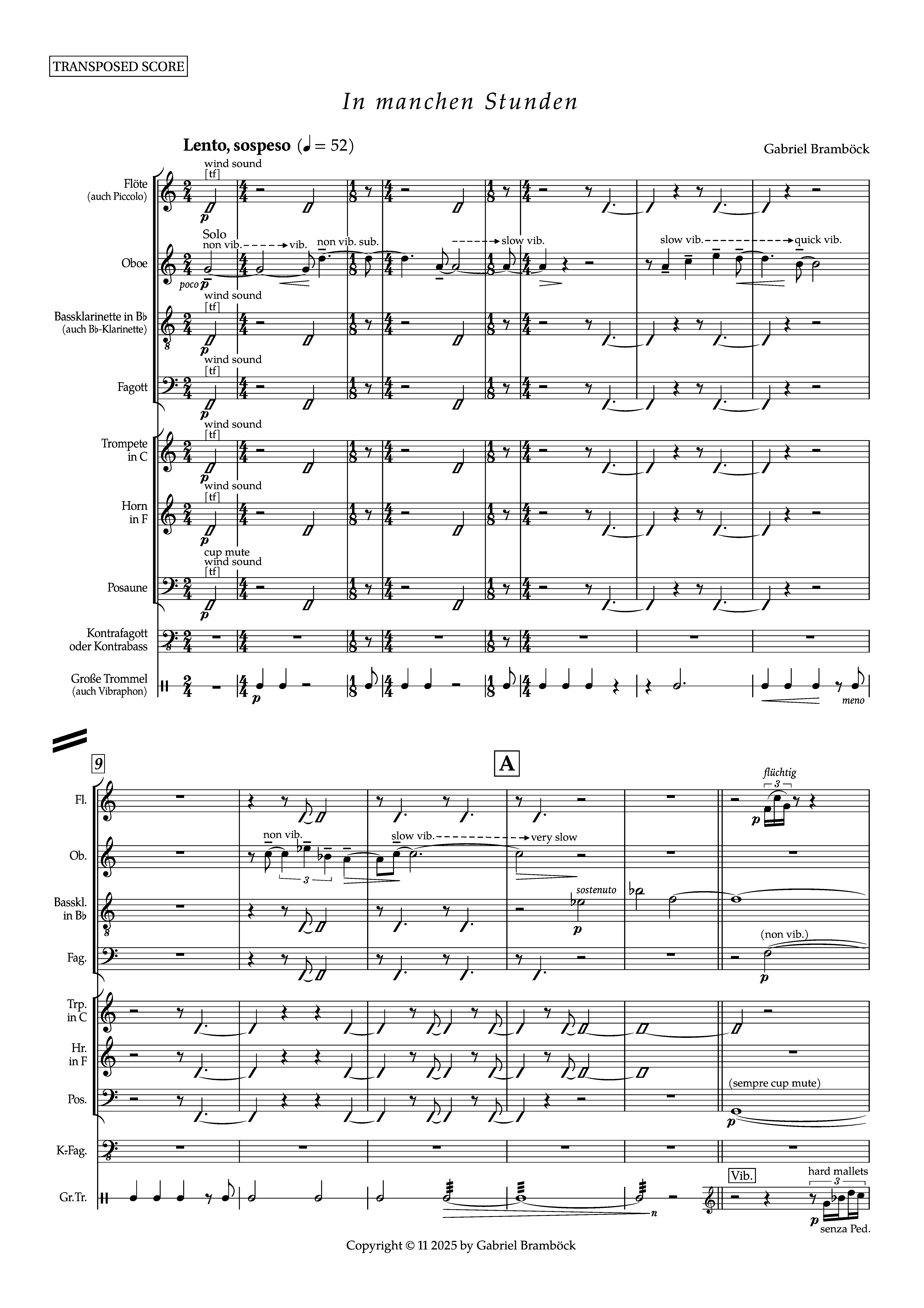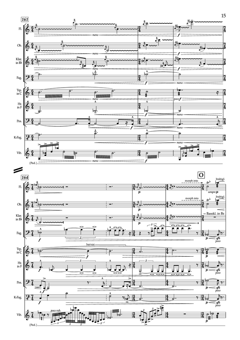 Bei meiner Komposition „In manchen Stunden“ für Bläseroktett und Schlagwerk sind nicht nur „Hintergrund“- und „Vordergrund“-Gestalten, sondern alle musikalischen Ereignisse aus einem Material gewonnen, nämlich den 13 Tönen (in 3 Phrasen), mit denen das Stück beginnt. Diese 3 Phrasen können als Kanonstruktur geführt werden (3-stimmiger Kanon im Septabstand, welcher in Tritonusschritten aufwärts sequenziert, insgesamt also auf der Ganztonachse situiert ist). Transformationstechniken wie Umkehrung, Krebsgang, Transposition, Augmentation und Diminution werden hier statt auf eine Tonreihe auf die gesamte Kanonstruktur angewandt. Aus dieser 13-tönigen Struktur ist die gesamte Komposition entwickelt.